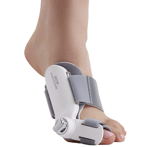 Finishing our list is a bunion corrector by Moen Medic. It is a splint-type corrector that helps with bunion pain and improves the alignment of the big toe. It is available in two sizes and is suitable for either foot. One of its main features is its adjustable design, which allows you to set it at three different angles to provide a customised fit for a specific stage of your bunion.
