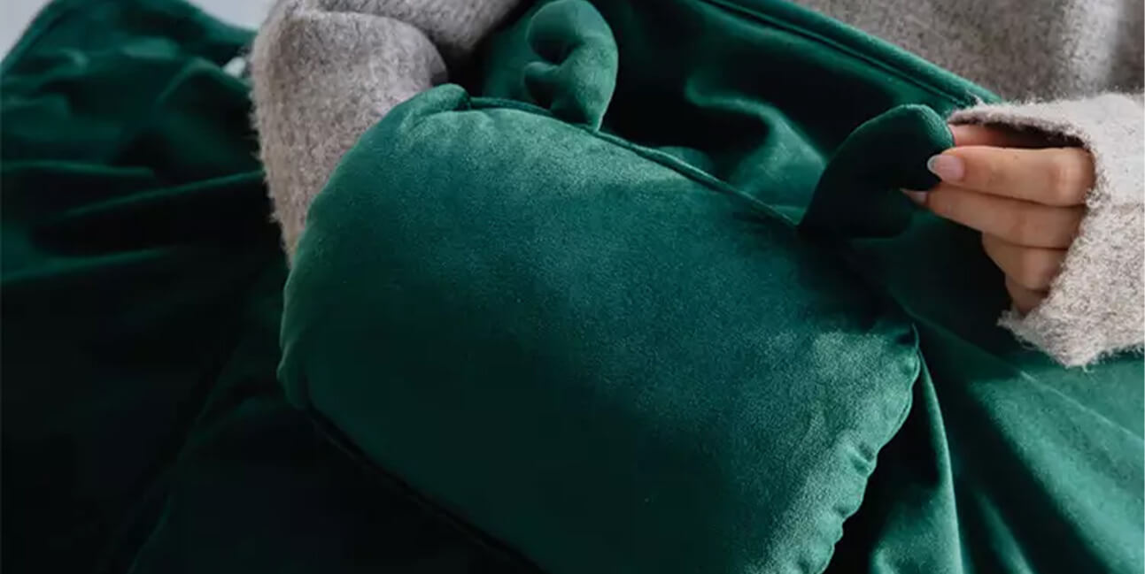 When it comes to comfort, a nice design can really add to it. It is much better to snuggle up underneath a soft blanket that is pleasing not only to your skin but also to the eye. ThermoHug electric blanket is exactly like that—its soft plush fabric feels incredibly nice on the skin, and the deep green colour, a cute pillow-like pocket, and little ear details are aesthetically pleasing, making ThermoHug a perfect snuggle buddy.