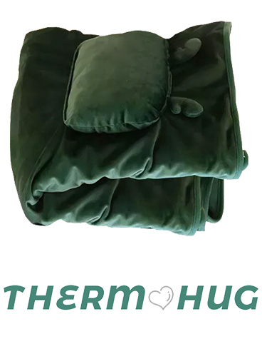 ThermoHug can be used as a heating pad for various body parts, a blanket, or a pillow!