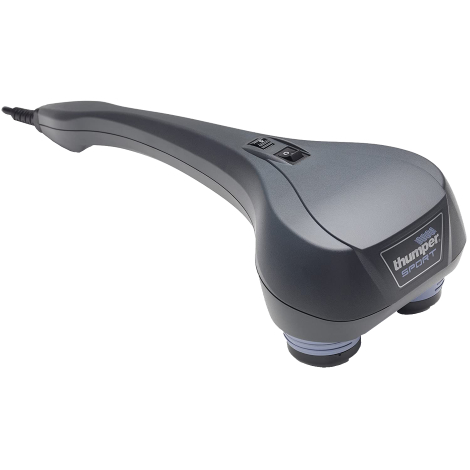 Another powerful and durable handheld massager on our list is Thumper Sport. This massager features two types of interchangeable massage heads (soft and firm). This allows you to modify your massage experience based on your preference and the specific needs of your muscles. With 20-40 pulses per second, it delivers a powerful massage that can reduce muscle soreness, tension, and fatigue. Whether you're an athlete looking to recover from tough workouts or simply looking for a convenient way to relax and unwind, the Thumper Sport handheld massager will surely help you feel your best. And its durable construction and a provided two-year warranty ensure that this massager is made to last.