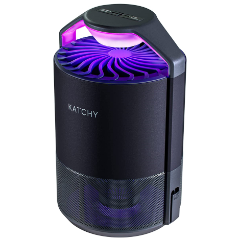 Our runner-up mosquito zapper comes from Katchy. In addition to its stylish design, this device has a lot of exciting features to offer. First of all, it is not technically a zapper as there is no electricity involved in this process. What Katchy does is it attracts the bugs with a UV light, then the fan sucks them in where they later land on a sticky glue tray and can’t escape anymore. This way, the bugs don’t clutter your counter and the process is clean and effective.