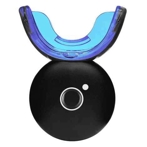 Third on our list is teeth whitener by MOON. Its design and simplicity would’ve allowed it to rank higher if not for the fact that it uses strips instead of gel. While there’s nothing wrong with whitening strips per se (they’re actually quite popular), they don’t offer as good of coverage as gel does. Besides, MOON’s strips are peroxide-based, so while it is faster-acting, it’s not as good as PAP. On a plus side, though, MOON teeth whitener, just like BrilliWhite, is wireless, giving you greater freedom to move about during the procedure. The kit includes the teeth whitener, travel case, USB charger, and a whopping 56 peppermint-flavor whitening strips.